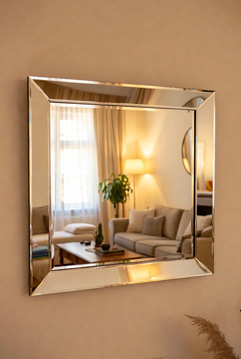 Een verfijnde spiegel met een subtiele parelroze rand die een vleugje elegantie toevoegt aan je interieur. De zachte tint en het minimalistische ontwerp maken deze spiegel perfect voor zowel moderne als klassieke ruimtes. Ideaal voor in de hal, slaapkamer of als decoratief accent in de woonkamer.