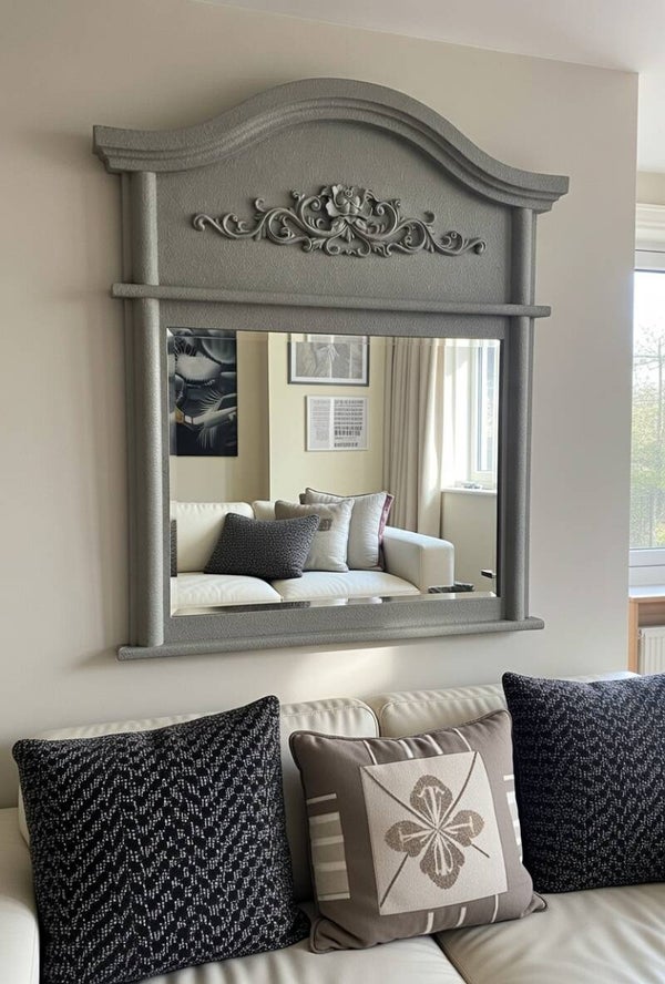Een indrukwekkende, grote spiegel met een brede, stijlvolle lijst die een luxe uitstraling geeft. Dit model is ideaal voor wie op zoek is naar een statement piece dat zowel praktisch als decoratief is. De royale afmetingen en hoogwaardige afwerking maken deze spiegel perfect voor een ruime hal, woonkamer of slaapkamer.
