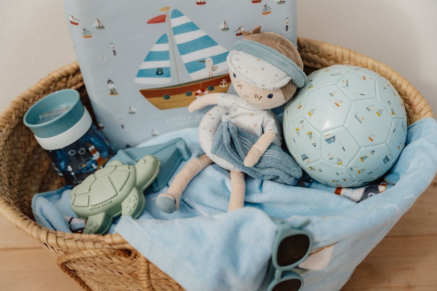 Maak kennis met Jim, de ultieme zomerknuffelpop van Little Dutch! Jim is helemaal klaar voor warme dagen aan het strand of bij het zwembad. Hij draagt een zomerse outfit uit de Sailors Bay-collectie, inclusief een stoere zonneklep, zwemring en hippe slippers. Gemaakt van heerlijk zacht materiaal is hij perfect om mee te knuffelen en spelen – waar je ook bent. Dankzij zijn handzame formaat van 35 cm neem je hem eenvoudig overal mee naartoe.