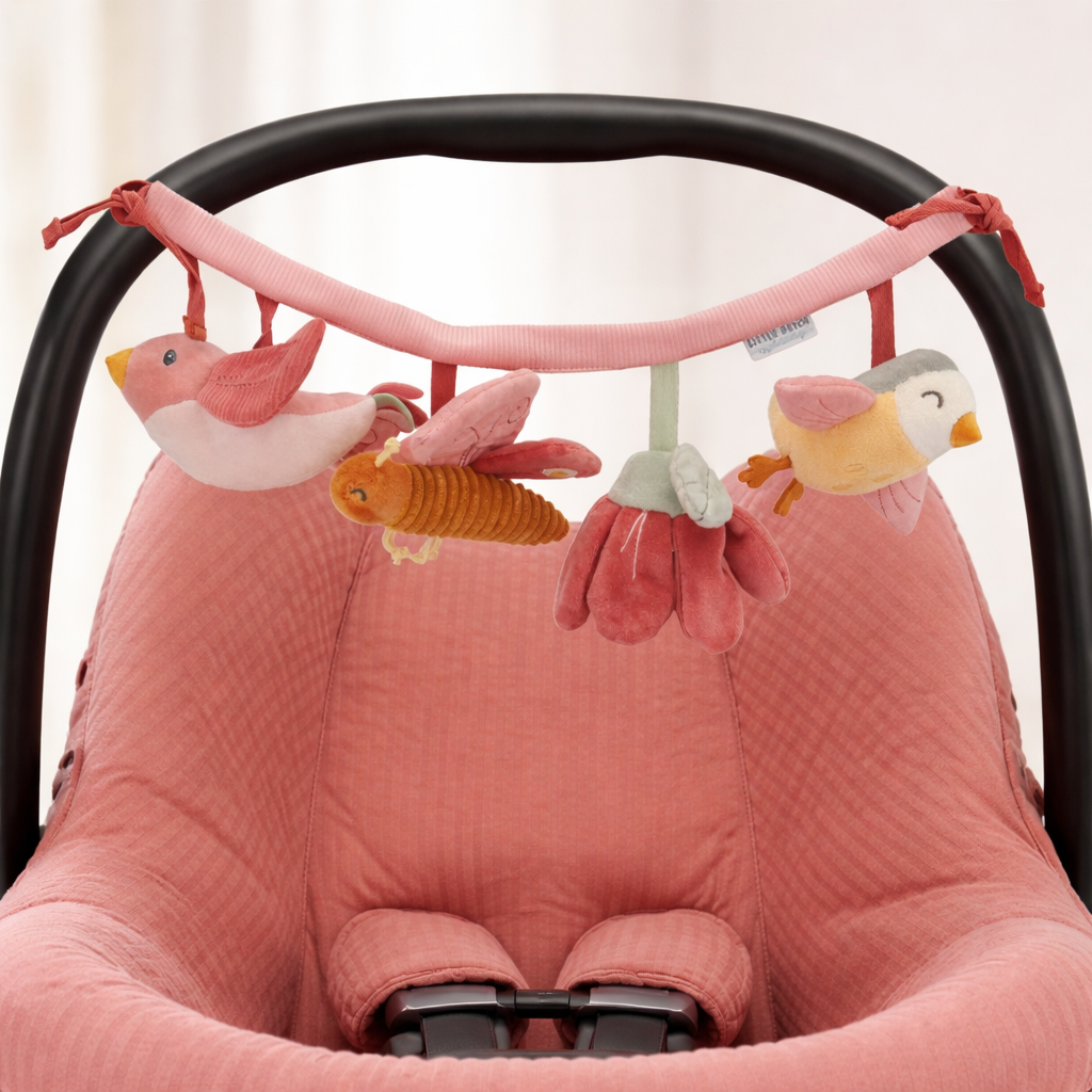 Rammel, piep, knisper. Ontdek de vier schattige speeltjes uit de Fairy Garden collectie aan deze wagenspanner. Het lieve hertje, kleurrijke bloem, paddenstoel en aardbei kunnen niet wachten om je te vermaken tijdens een wandeling. Geef je kindje een zintuiglijke ervaring met deze kleurrijke wagenspanner, die de ontwikkeling van de hand-oogcoördinatie stimuleert terwijl jullie onderweg zijn. Bevestig de wagenspanner eenvoudig aan de kinderwagen.