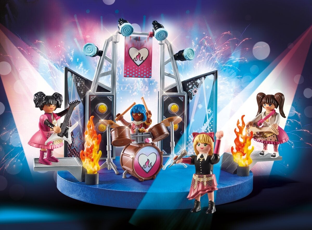 De set wordt geleverd met drie figuren – twee muzikanten met gitaren en een zangeres met microfoon en standaard. Dankzij het Starter Pack-concept is deze set ideaal als eerste kennismaking met de wereld van Playmobil City Life of als uitbreiding van jouw bestaande collectie.