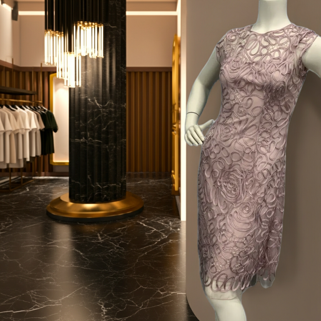 Deze elegante Magic Nights cocktailjurk (model 5046) is een verfijnde knielange avondjurk in maat 40, uitgevoerd in een zachte lila / mauve tint. De jurk heeft een recht en aansluitend silhouet dat het lichaam elegant volgt, zonder uitlopende rok. Perfect voor formele gelegenheden waarbij stijl en klasse centraal staan.